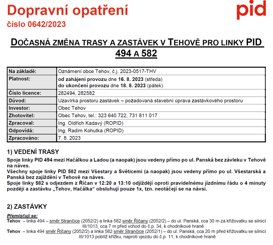 Z důvodu úpravu výšky asfaltu v prostoru zastávek autobusu na návsi budou zastávky autobusu od středy 16. do pátku 18. srpna dočasně přemístěny na ul. Panská: