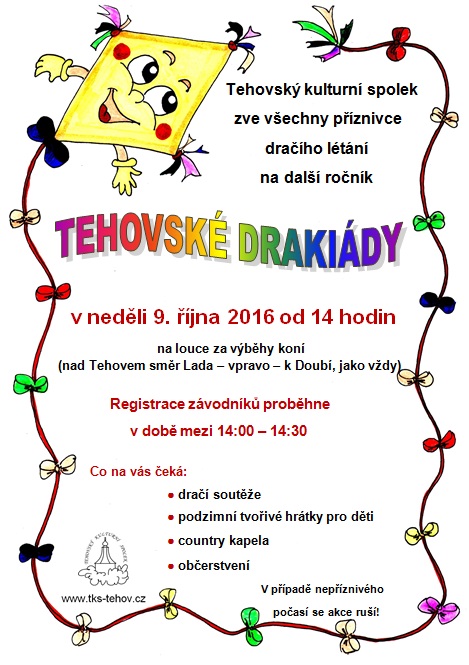 Tehovský kulturní spolek zve všechny v neděli 9. října od 14h na drakiádu na louce za výběhy koní (u vysílače).
