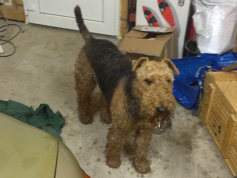 Na okraji staré zástavby Tehova směrem na Světice byl nalezen 1.1.2015 v podvečerních hodinách zaběhnutý pes rasy Aierdale Terrier.