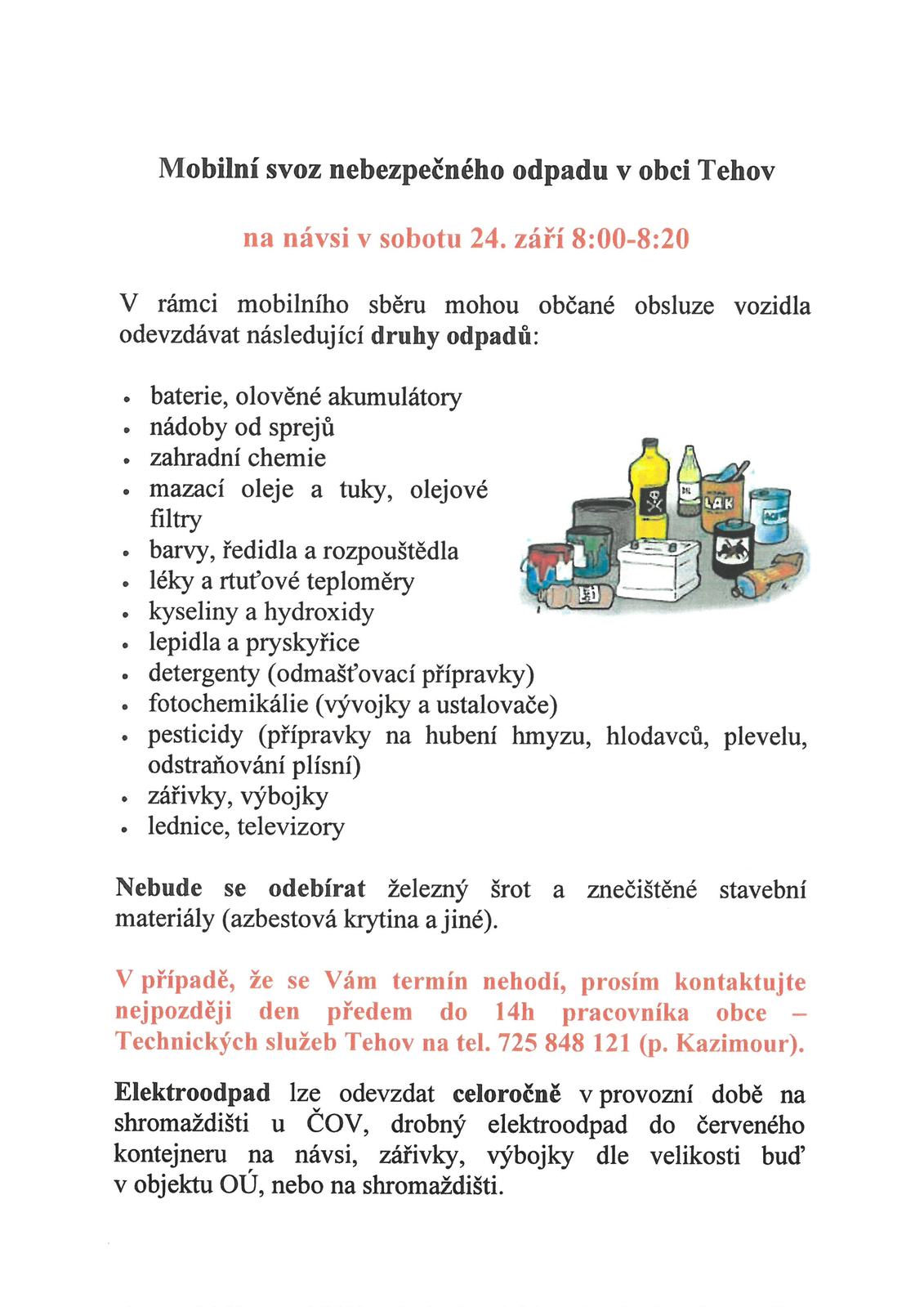 Připomínáme OČKOVÁNÍ PSŮ již toto pondělí a SVOZ NEBEZPEČNÉHO ODPADU příští sobotu.