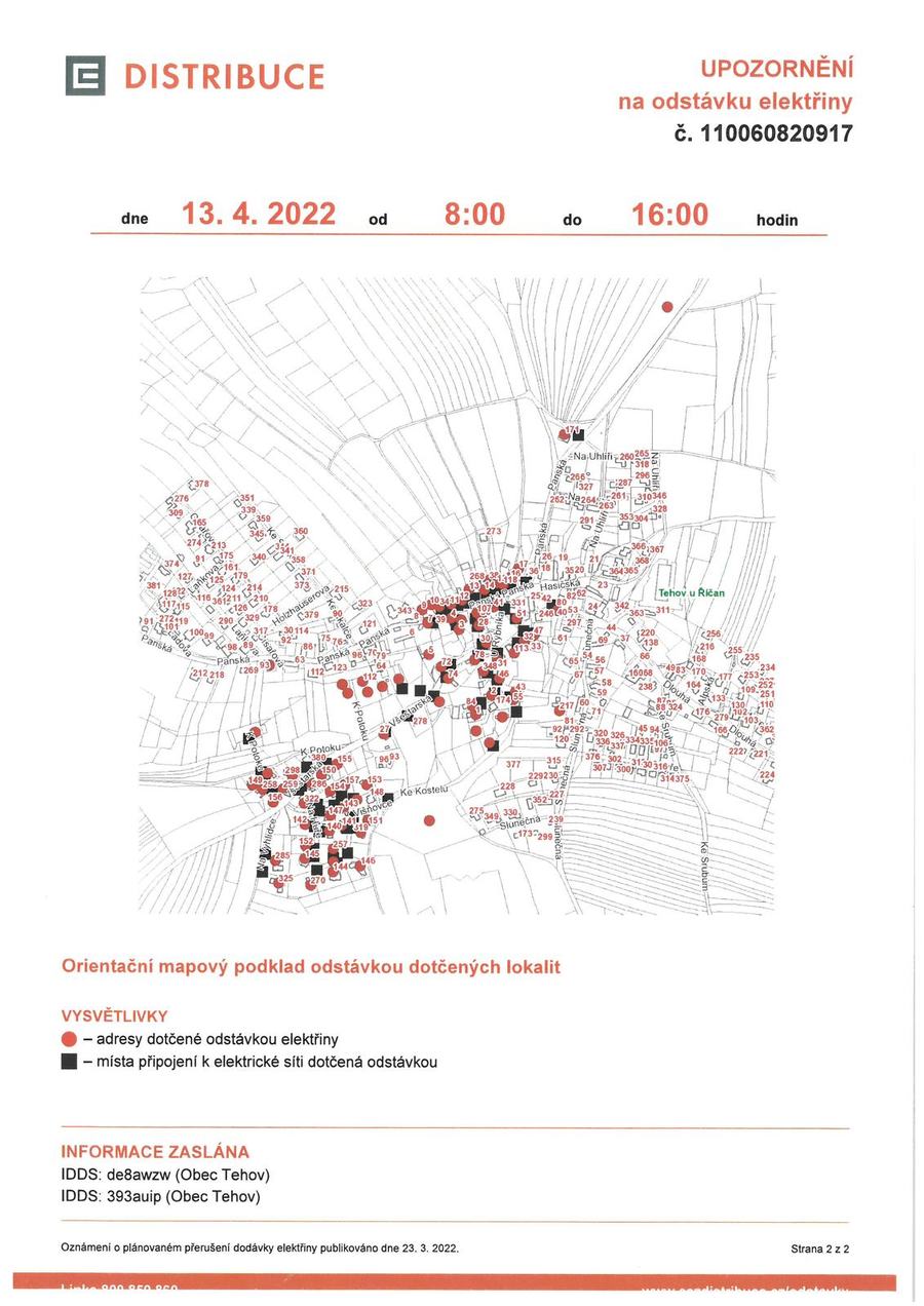 Plánovaná odstávka zahrnuje tyto lokality: