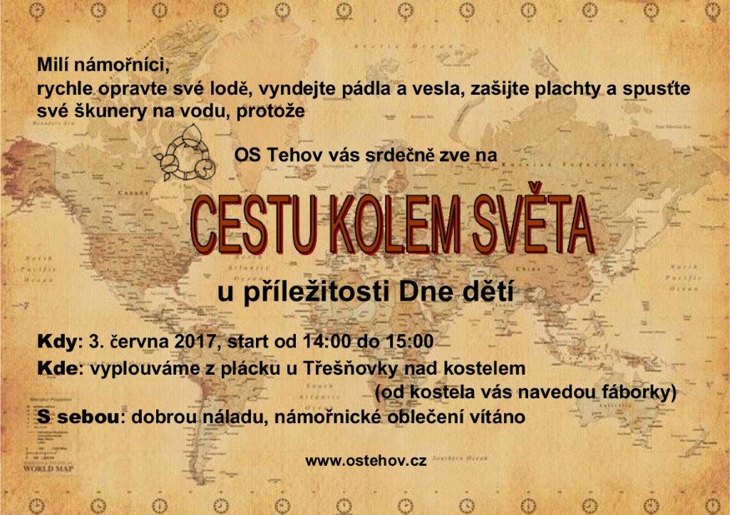 Spolek OS Tehov zve všechny děti na oslavu Dětského dne v sobotu 3. června, tentokrát na téma CESTA KOLEM SVÉTA. Pozor změna místa startu! Uvítáme dobrovolníky na jednotlivá stanoviště, děkujeme.