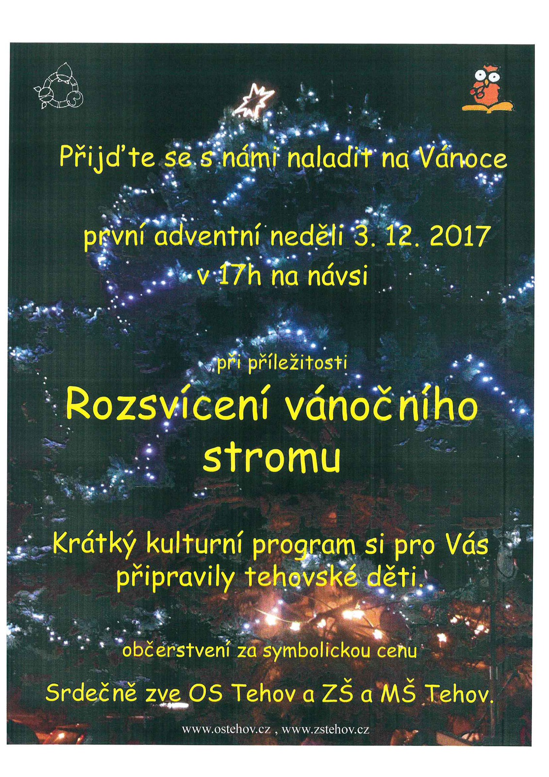 Spolek OS Tehov společně se ZŠ a MŠ Tehov zve všechny na sousedské setkání na návsi při příležitosti rozsvícení vánočního stromu o první adventní neděli 3. prosince v 17h.