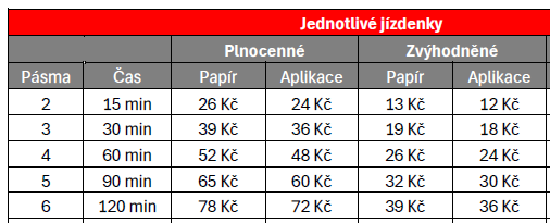 Za zmínku rovněž stojí, že jsou nově stanoveny dvojí ceny dle typu jízdního dokladu (papír/aplikace).