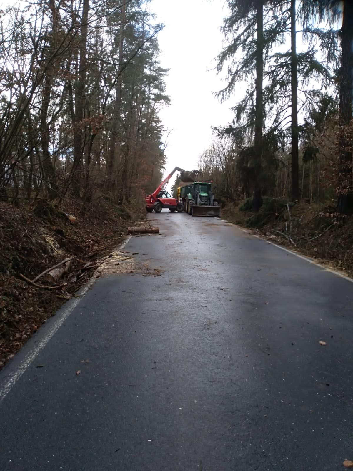 Silnice III/1011 z Tehova na Vojkov je opět průjezdná. Děkujeme za perfektní práci Technickým službám Tehov (koordinace, kácení), panu Chromému (kácení a stahování), tehovským dobrovolným hasičům (dopravní opatření a technická pomoc), panu Zajíčkovi a Farmě Tehov (manipulace a doprava). Všichni odvedli svoji práci na výbornou a oproti předpokladu bylo hotovo o 3h dříve.