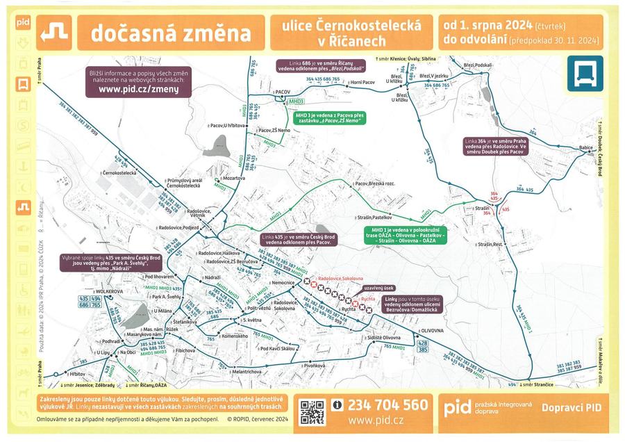 Současně upozorňujeme, že od 5.8. 2024 (předpoklad je do 26.10.) bude v souvislosti s rekonstrukcí komunikace ve Všestarech nově uzavřena i křižovatka u Všestarského hřbitova.