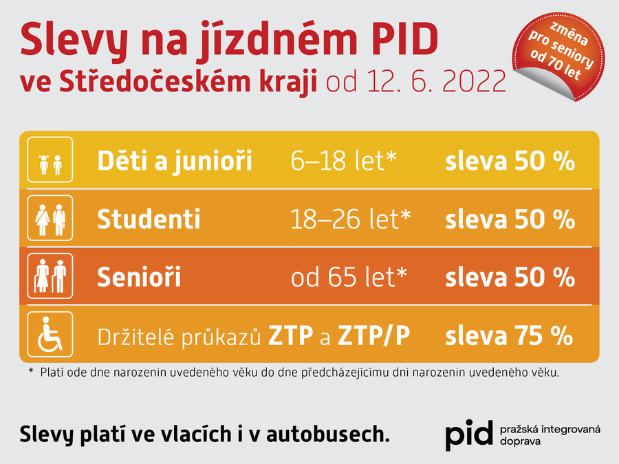 Nejvýznamnější změnou je zrušení bezplatné přepravy pro seniory nad 70 let v autobusech a sjednocení podmínek pro tuto věkovou kategorii v autobusech a vlacích PID. Senioři nad 70 let budou nově platit poloviční jízdné, tedy stejně jako nyní senioři od 65 let.